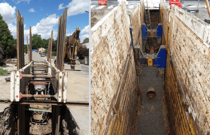 Pose de 732 ml de canalisation Grès, béton et PVC (Ø160 à Ø400) EU et EP.